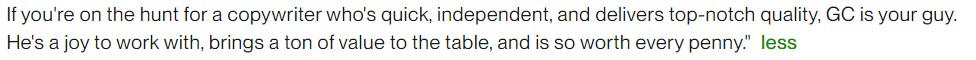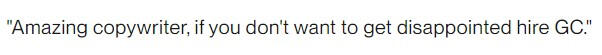 "Amazing copywriter, if you don't want to get disappointed, hire GC"